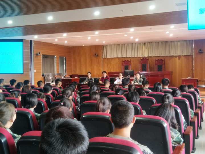 为增进大学生国防教育认识实践,激发自立自强、自我管理、自我锻炼的能力并着力培养大学生集体意识、爱国意识,9月7日下午15:30,政新葡的京集团8814vip在文荟楼模拟法庭组织召开2017级新生军训动员大会,学院党委副书记崔明堂、辅导员老师出席本次会议。