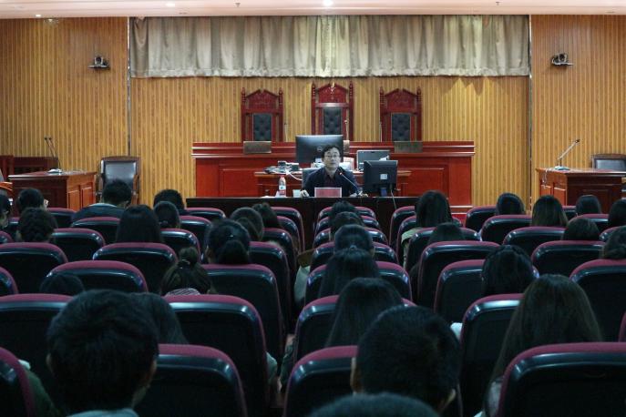 11月8日晚上6点30分,宁夏大学网络文明守纪与安全教育宣讲团团员、学生处副处长张翼老师在贺兰山校区文荟楼模拟法庭,为政新葡的京集团8814vip2018级全体同学做有关“网络文明守纪与安全教育”主题讲座。