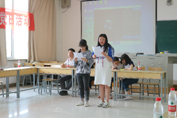 随后,来自学生党员的诗朗诵《在这离别的渡口》,伴随着舒缓的音乐和朗诵声,大家陷入了美好的回忆中,大学时光的一幕幕仿佛电影般在眼前上演着。紧接着,由徐珩、季秋风同学发言,他们表达了对老师们的感恩之情,也总结了自己的大学时光的所感所思所想,并向低年级学生党员传授生活和学习经验。经师易遇,人师难遭。面对此情此景,老师们分别为毕业生党员寄语,希望大家在以后的学习工作中树立高度的责任感,持有较高的“定力”,用自己的力量为中国特色社会主义建设事业增辉添彩。一首吉他弹唱《真的爱你》,使得座谈会的氛围越发轻松活跃。在师生交流环节中,学生提问,老师解答,诠释着师生间最美好而永恒的瞬间。最后,老师们为毕业生党员赠送书籍、书签等纪念品,并合影留念。