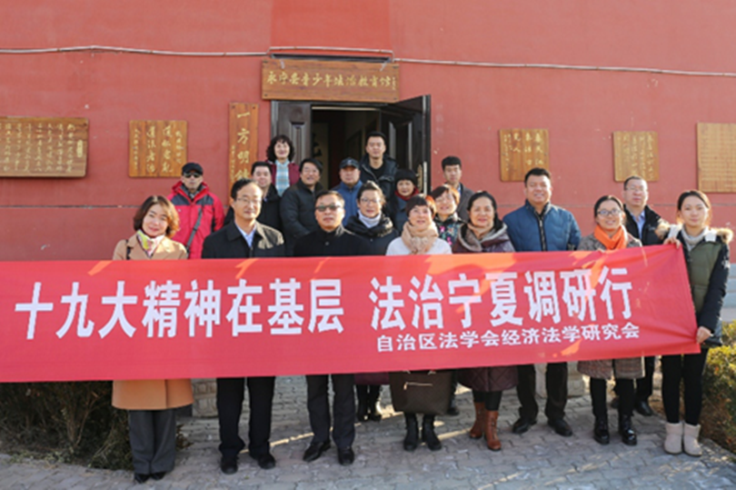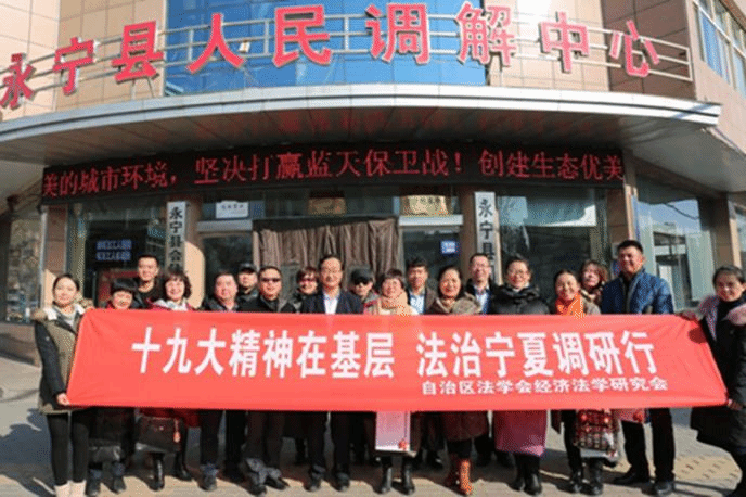 为了深入学习贯彻党的十九大精神,加强对中国特色“多元化矛盾纠纷化解机制”的准确把握,2017年12月21日,自治区法学会经济法学研究会的部分理事、宁夏大学政新葡的京集团8814vip的部分师生在自治区法学会秘书长李跃先、自治区法学会研究部副部长刘文明、宁夏大学政新葡的京集团8814vip党委书记潘瑞、自治区法学会经济法学研究会会长刘芳教授的带领下,一行二十余人来到宁夏永宁县,调研永宁县司法局在人民调解和法治文化建设方面的创新工作。