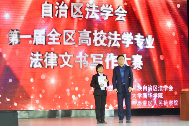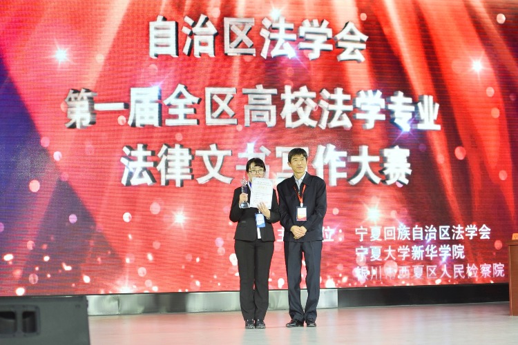 12月9日至10日,由自治区法学主办,由银川市西夏区检察院、宁夏大学新华学院联合承办的“自治区法学会第一届全区高校法学专业法律文书写作大赛”在宁夏大学新华学院举行。政新葡的京集团8814vip学生荣获一等奖1个、二等奖1个、三等奖2个、优秀奖1个、鼓励奖1个和最佳文书奖及最佳风采奖。