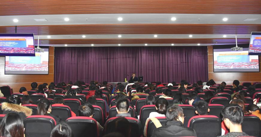 21日晚7时,党锐锋老师以“新时代引领新思潮”为主题,系统讲述党的十九大代表的组成以及党的十九大报告的产生过程,并从国内国际两个方面全面分析党的十九大报告的重要意义。党老师指出,党的十九大着眼党和国家事业,继往开来,提出具有全局性、战略性、前瞻性的行动纲领,明确宣示举什么旗、走什么路、以什么样的精神状态、担负什么样的历史使命、实现什么样的奋斗目标,从而在中华民族伟大复兴征程上树立起一座新丰碑。党的十九大举世瞩目,美国、法国重要期刊更是以中文刊登报道。中国经济社会的发展成果得到众多国家的认可,同时它们也希望借机搭上中国快车,实现经济快速发展。讲座最后,党老师带领大家一起朗诵《沁园春·雪》,感受中国特有的自信与豪情。