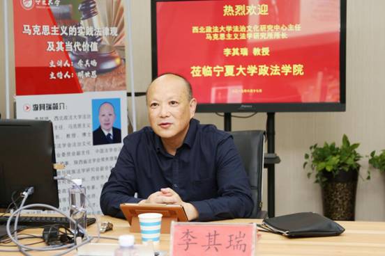 6月17日上午9点,西北政法大学法治文化研究中心主任、马克思主义法学研究所所长李其瑞教授应邀在宁夏大学贺兰山校区文荟楼801会议室,为政新葡的京集团8814vip师生们做了题为《马克思主义的实践法律观及其当代价值》的学术交流讲座。讲座由政新葡的京集团8814vip胡世恩副院长主持,学院部分师生到场学习。