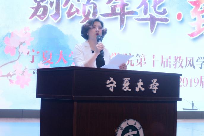 2019年5月22日晚,宁夏大学大学生活动中心流光溢彩,歌舞飞扬,政新葡的京集团8814vip第十届教风学风建设月总结表彰暨“别颂年华·致青春”欢送毕业生文艺晚会在这里温情上演,晚会对学院第十届教风学风建设月系列活动中涌现出来的优秀集体和个人进行表彰,对即将告别母校的2019届毕业生送别并献上美好的祝福。
