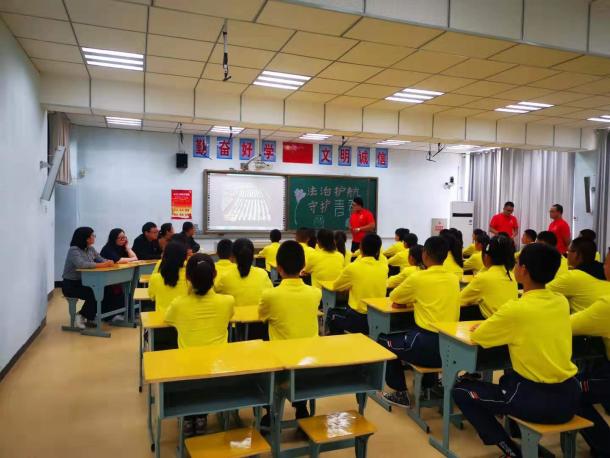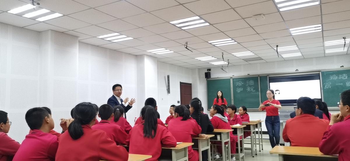 政新葡的京集团8814vip党委书记潘瑞、教工党支部书记胡世恩来到各班与同学们亲切交谈,同学们纷纷发言,表示通过这次活动收获良多,希望日后党员师生们可以多来学校,给大家普及更多法律知识。