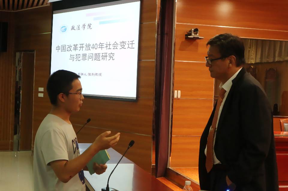 在互动环节,张荆教授对同学提出的城中村教育失范问题和白领犯罪等问题作了耐心细致的解答,并鼓励大家积极对社会失范问题进行深入研究,同学们表示受益匪浅。