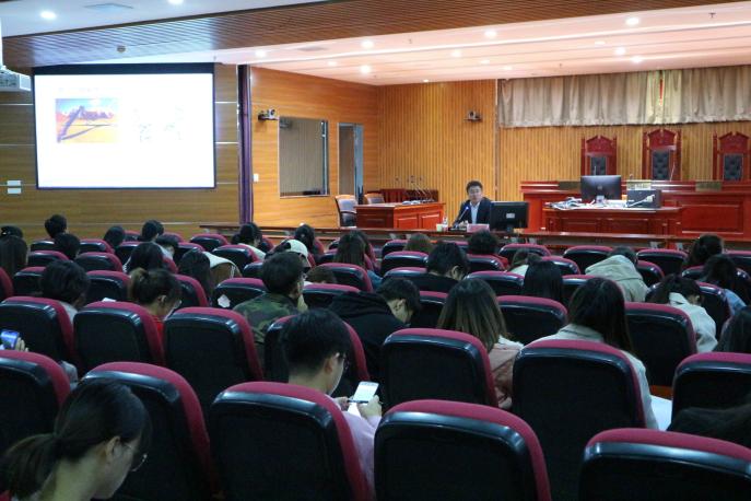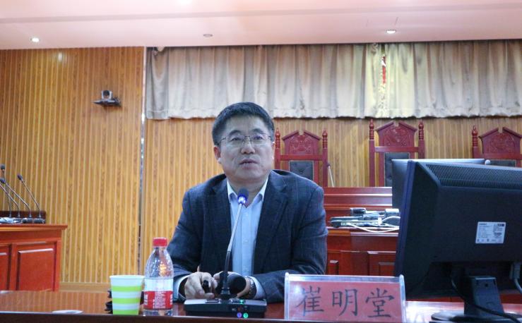 10月28日晚,政新葡的京集团8814vip党委副书记崔明堂在文荟楼模拟法庭为学院分党校培训班学员讲“不忘初心、牢记使命”专题党课《坚定理想信念 凝聚青春力量》。