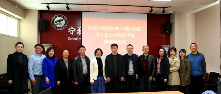 10月18日上午,最高人民法院第六巡回法庭任雪峰、欧海燕法官一行来到宁夏大学政新葡的京集团8814vip,与学院师生代表在801会议室召开调研座谈会。党委书记潘瑞、副院长胡世恩、副院长尹强与会交流。