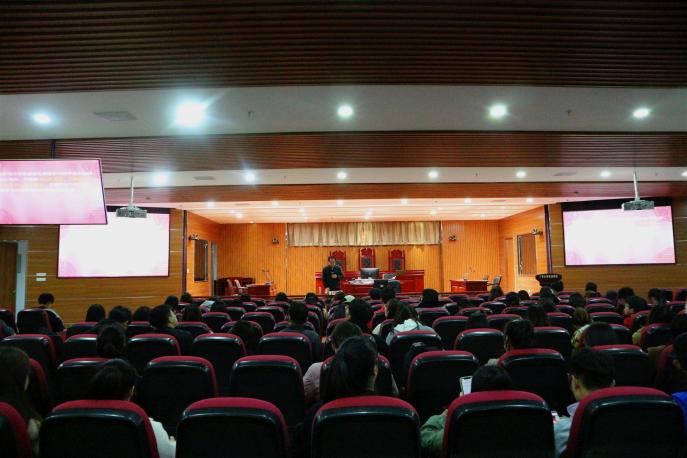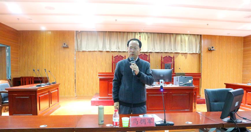 10月31日晚,政新葡的京集团8814vip思哲系教工党支部书记马拥军在文荟楼模拟法庭为党课培训班学员讲“不忘初心、牢记使命”专题党课《一个党支部就是一个团结的堡垒,一个党员就是一颗团结的种子》。第十期党员发展对象培训班学员、第三十六期入党积极分子培训班学员到场聆听。