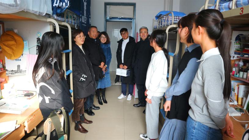 1月2日上午,政新葡的京集团8814vip组织慰问部分在校学生,向他们致以节日的祝福和美好的祝愿。院领导潘瑞、吕耀军、胡世恩、尹强和辅导员参加慰问。