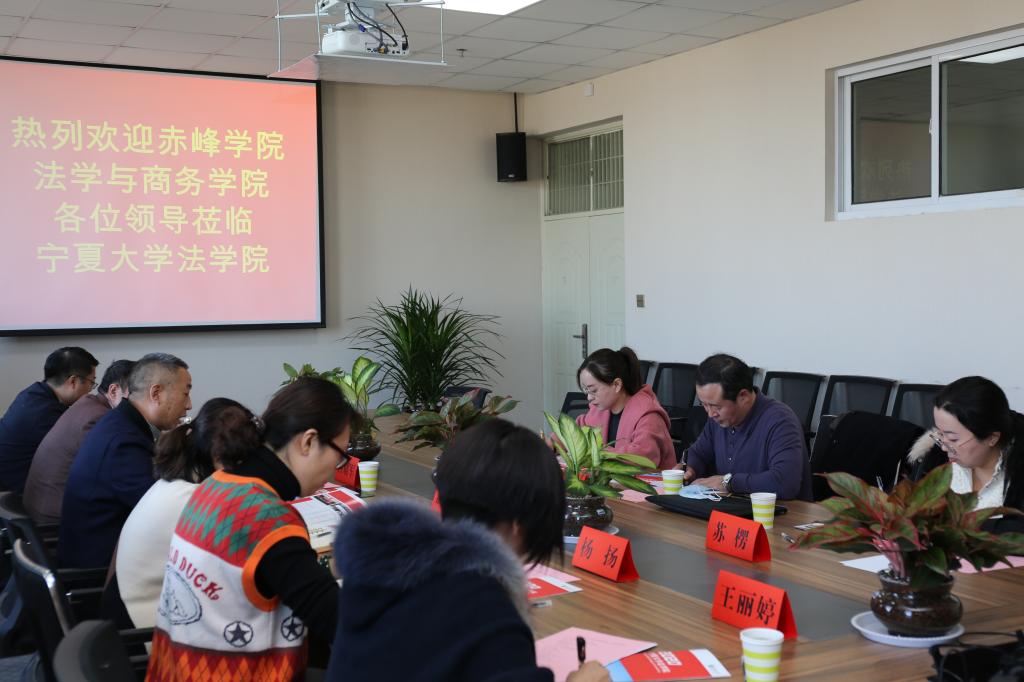 随后赤峰学院法学与商务学院院长吕东明从学院理念、学科建设、专业设置等方面介绍了本学院的发展情况。与会人员围绕专业建设、教学改革、人才培养、毕业生实习与就业、师资考核管理机制等问题展开充分讨论。会上,法律系主任张弛回溯学院及法学学科发展进程,重点介绍了我院本科生、研究生课程设置情况及其新的人才培养方式,提到要汇聚协同育人的智慧和力量,为学生提供更多优质师资和优质实践。