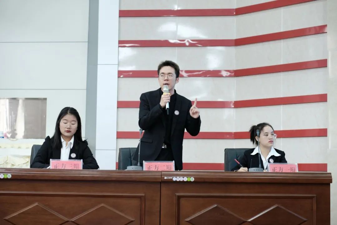 在活动主会场西吉中学,宁夏大学新青年法治宣传志愿服务队、宁夏大学演讲与辩论社为同学们带来一场“应不应该举报违停信息至相关部门”的法治辩论赛表演赛。正反双方围绕公民守法的态度和行政机关执法的成本等展开辩论,引发同学们关于法律现象、法律问题、法律制度的思考。辩手们才思敏捷,风趣幽默,将生活中的法律以简单明了、轻松愉悦的例子诠释出来,彰显了辩论赛语言、思维、思辨、逻辑独特的魅力。比赛结束后,新葡的京集团8814vip官方登录党委副书记杨扬、宁夏大学演讲与辩论社总教练张弛老师分别对辩手们的精彩表现进行了点评,并再次引导同学们积极探索法律思维的趣味一面、生活一面,感受辩论带来的乐趣。活动在同学们热烈的掌声中圆满地落下帷幕。