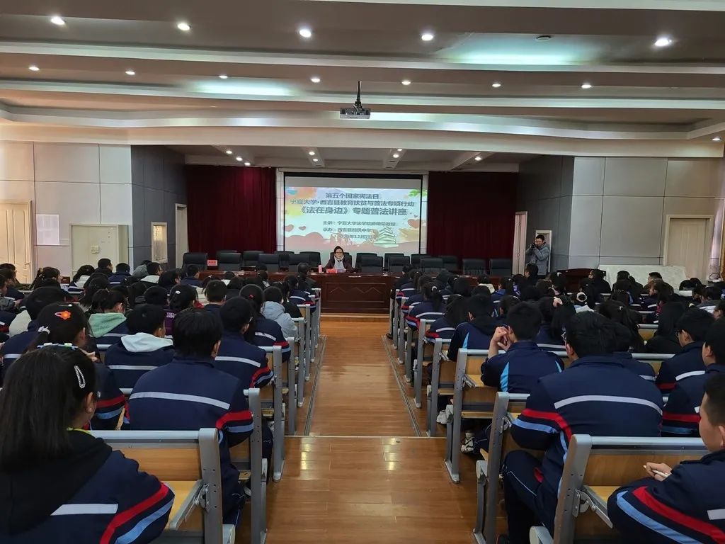 下午1点,活动启动仪式在西吉中学报告厅准时开始,由西吉县教育体育局副局长黄越主持。西吉县教育体育局副局长郭文佺,司法局副局长黄达伟,西吉中学校长郭占荣,新葡的京集团8814vip官方登录党委书记潘瑞、党委副书记杨扬,法律系主任张弛出席启动仪式,新葡的京集团8814vip官方登录与西吉中学的部分师生到场参加。