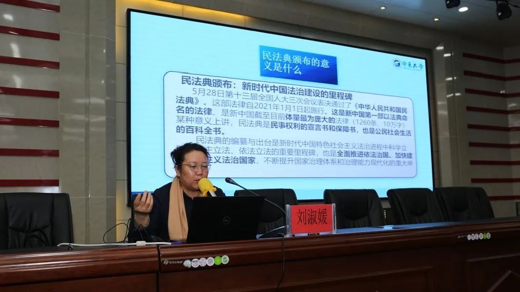 新葡的京集团8814vip官方登录刘淑媛教授为西吉中学师生带来《民法典》专题普法讲座。她结合学校管理、教育教学、生活实际和真实案例,从“什么是民法典、民法典与宪法的关系、民法典颁布和实施的意义、民法典对未成年人的特殊保护、为什么要学习民法典”等几个方面,深入浅出的解读了《民法典》的现实意义。