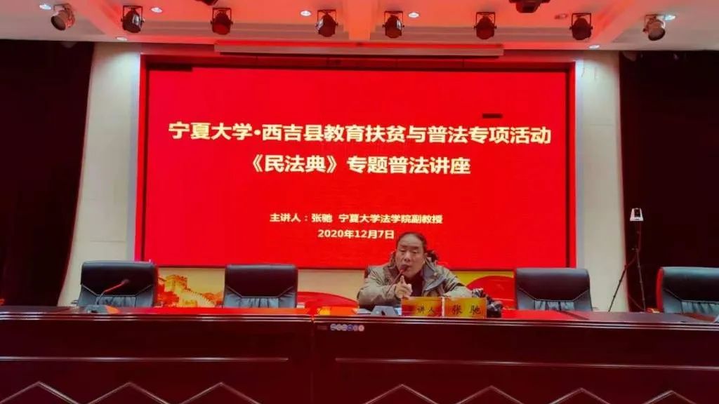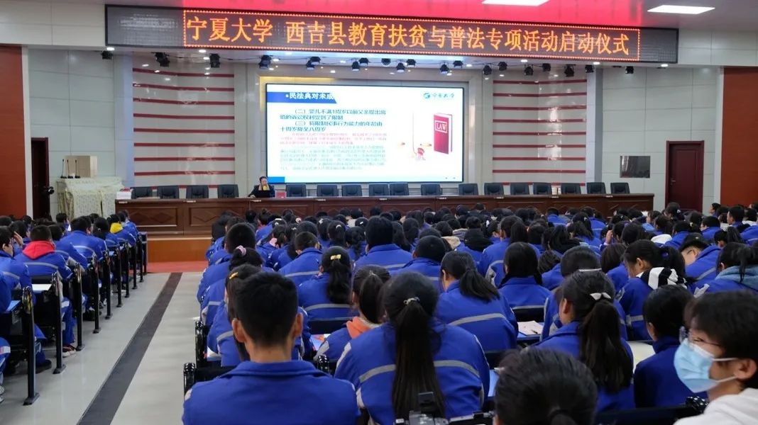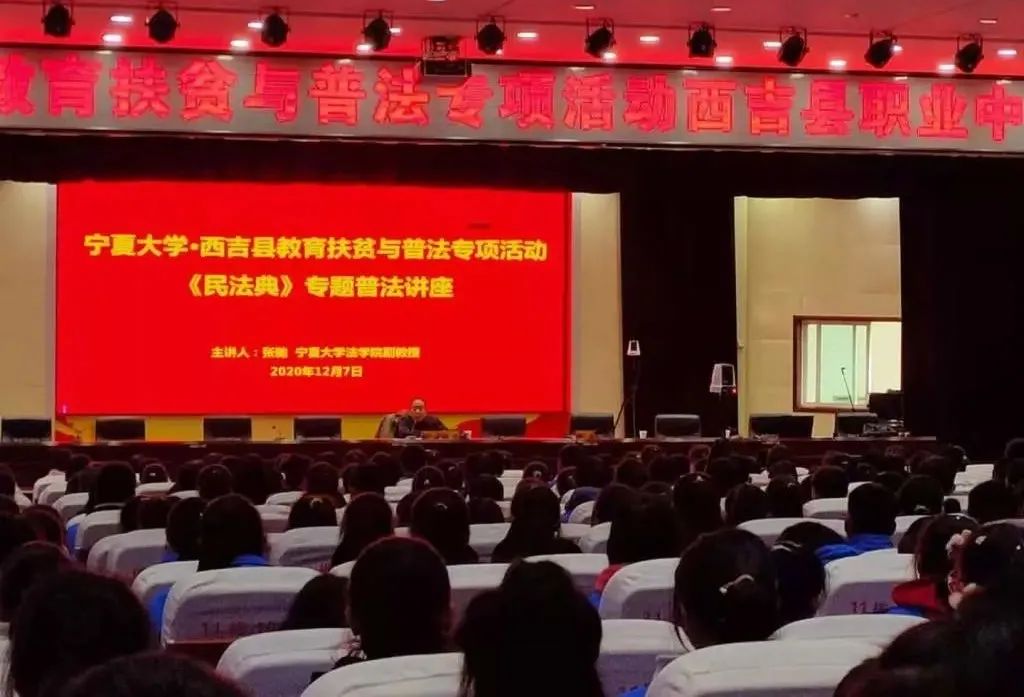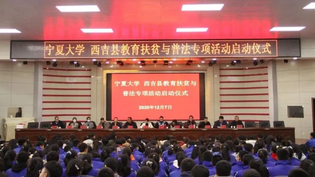 为深入贯彻落实我校与西吉县人民政府签订的《宁夏大学协助教育部办公厅结对帮扶西吉县开展教育脱贫攻坚工作协议》,协助西吉县重点加强社会主义法治文化建设和法治乡村建设,12月7日下午,新葡的京集团8814vip官方登录组织师生团队前往西吉县开展扶贫与普法专项活动。