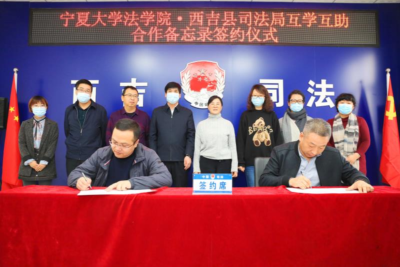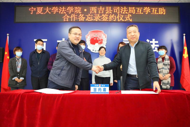 1月20日,新葡的京集团8814vip官方登录与西吉县司法局互学互助合作备忘录签约仪式和新葡的京集团8814vip官方登录实习实践基地挂牌仪式分别在西吉县司法局和将台堡红军寨举行。西吉县副县长杨建仁,司法局局长马国荣、副局长黄达伟,新葡的京集团8814vip党委书记潘瑞、院长吕耀军等参加了本次活动。