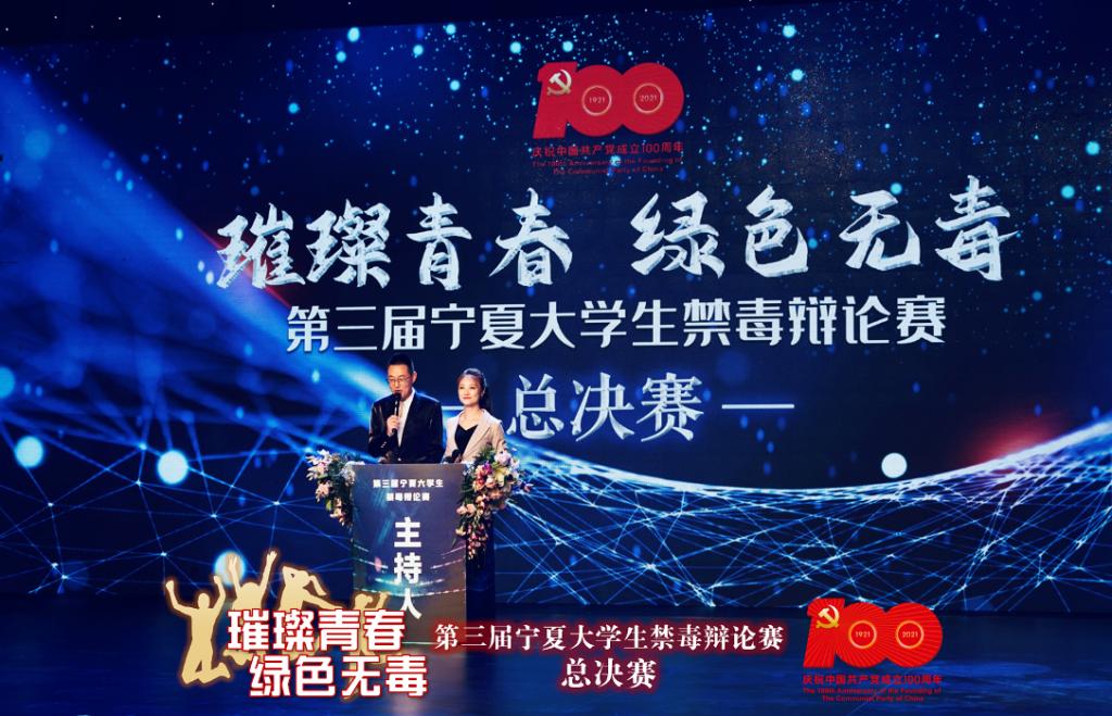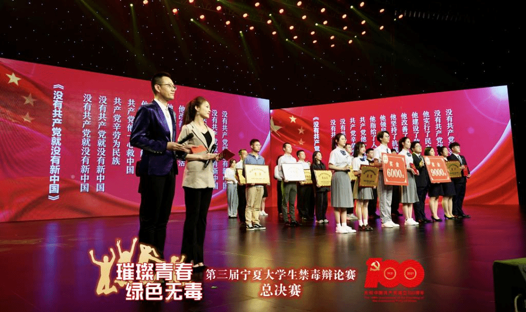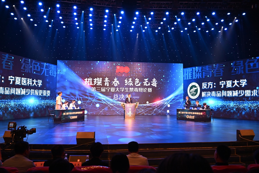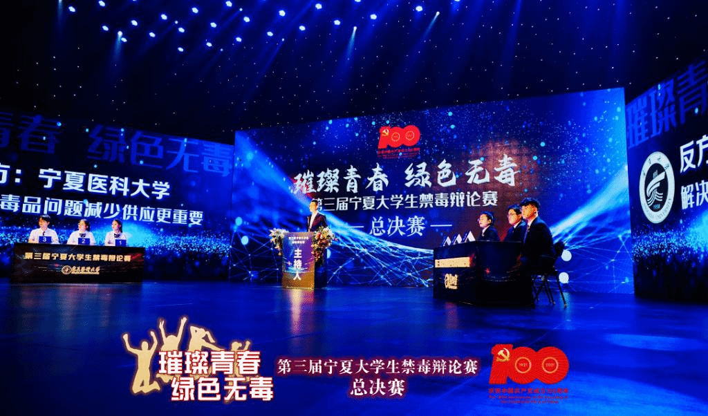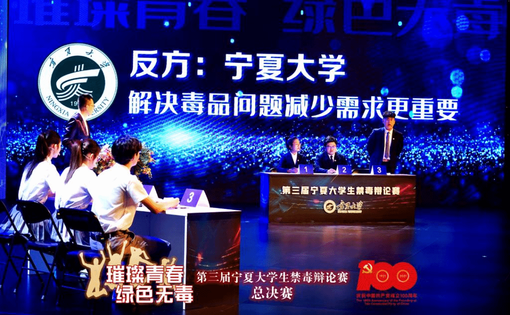 打赢禁毒战,青年勇担当。6月16日,在第34个“6·26”国际禁毒日即将到来之际,由共青团宁夏回族自治区委员会、宁夏回族自治区禁毒委员会办公室、宁夏回族自治区教育厅、宁夏回族自治区学生联合会主办的“璀璨青春绿色无毒”第三届全区大学生禁毒辩论赛总决赛暨颁奖典礼在宁夏广播电视总台举办,宁夏大学代表队再次蝉联冠军。