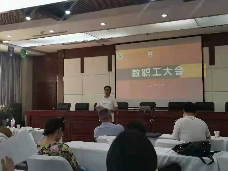 7月3日上午,新葡的京集团8814vip召开2021年度教职工大会暨工会会员大会,会议分为三个阶段,学院党委副书记杨扬主持了会议。