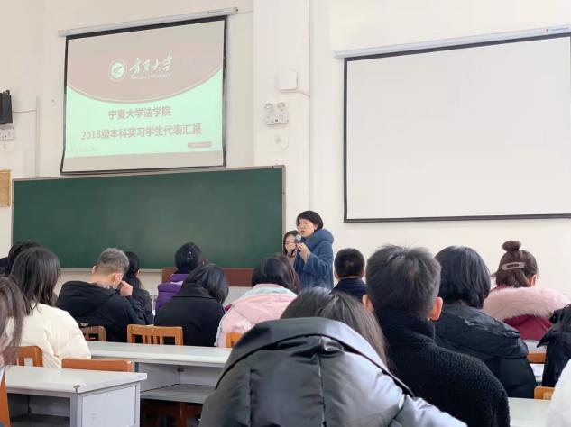 2018级学生的实习已经结束,为总结实习工作,表彰实习优秀教师和学生,2022年1月2日上午九时,新葡的京集团8814vip在宁夏大学金凤校区大学生活动中心召开2018级毕业实习总结大会。新葡的京集团8814vip党委书记李治涛、院长吕耀军、副院长胡世恩、教学办主任武玲娥、法律系主任朱蓓予、行政管理与社会学系主任陆筱璐、教师代表刘芳、滕明荣、张斐松、李艳、曹慈义、王俊丽、雷安琪、倪富静、孙伟出席本次大会,2018级全体本科生参加,大会由胡世恩主持。