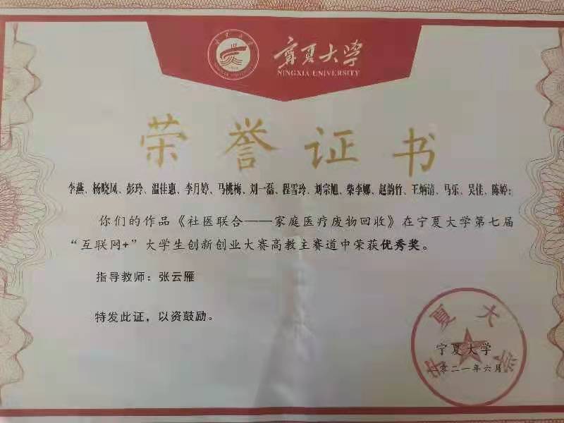 其次,带领学生参加多种实践活动,将所学的环保法知识活学活用。带领学生参加环保公益活动:参加垃圾分类志愿者活动、环境法宣传、保护黄河等公益活动;辅导十几名学生参加环境保护方面的大创项目、互联网+项目,通过项目加深生态文明建设理论的学习和运用。其中学生李燕主持的《社医联合--家庭医疗废物回收》获得宁夏大学第七届“互联网+”大学生创新创业大赛高教主赛道优秀奖。在课程思政的教学过程中,不断深入理论研究,主持并完成宁夏法学会环境法方面的课题研究项目,其中《宁夏黄河流域生态用水安全法治保障研究》获宁夏回族自治区“法治宁夏论坛”论文一等奖。参加水利部、河南省法学会举办的“黄河生态保护和高质量研讨会”,参会论文获三等奖。