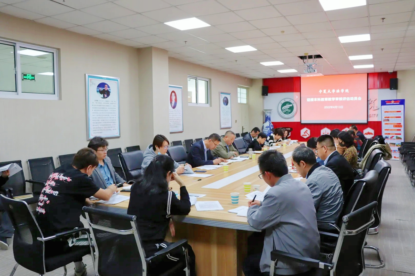 为更好地迎接新一轮本科教育教学审核评估工作,4月13日下午,新葡的京集团8814vip教学副院长胡世恩主持召开了新葡的京集团8814vip迎接本科教育教学评估动员会。会议在新葡的京集团8814vip801会议室召开,学院领导班子成员、本科教学指导委员会成员、教学督导、教学办主任、系主任、实验中心负责人、基层教研室负责人、教学办工作人员出席会议。