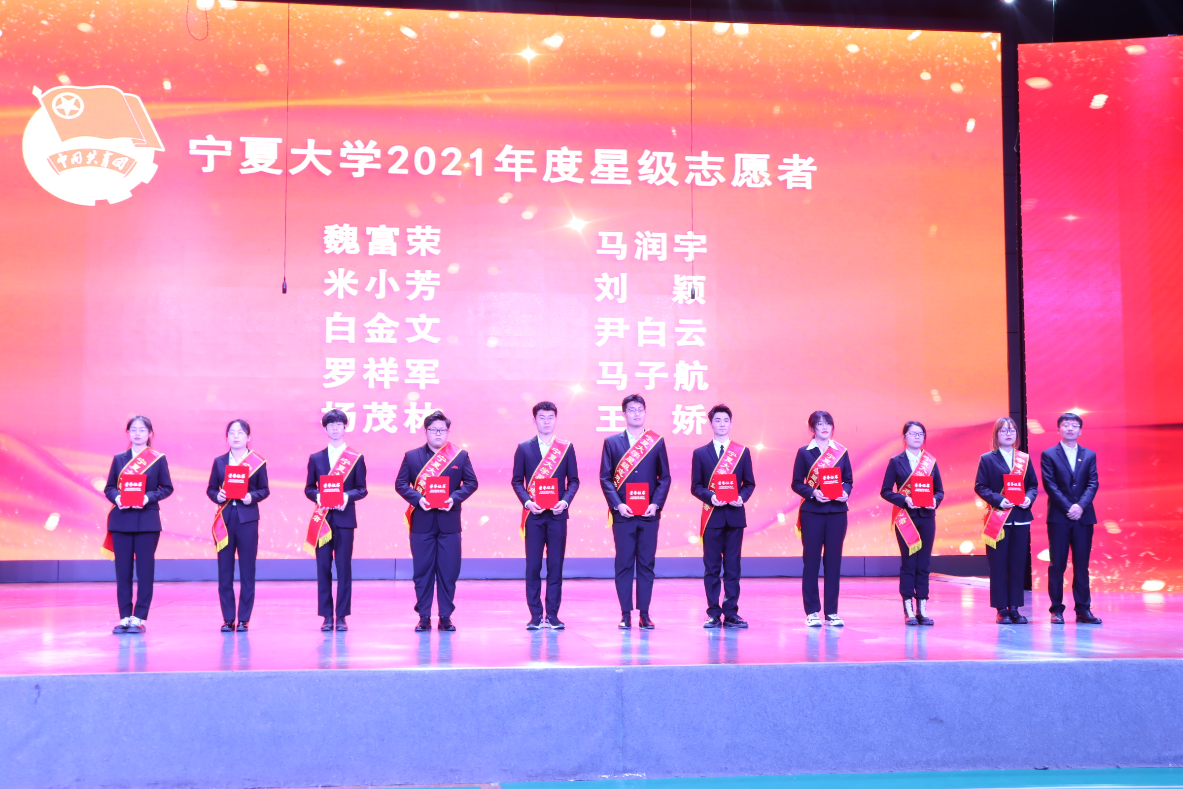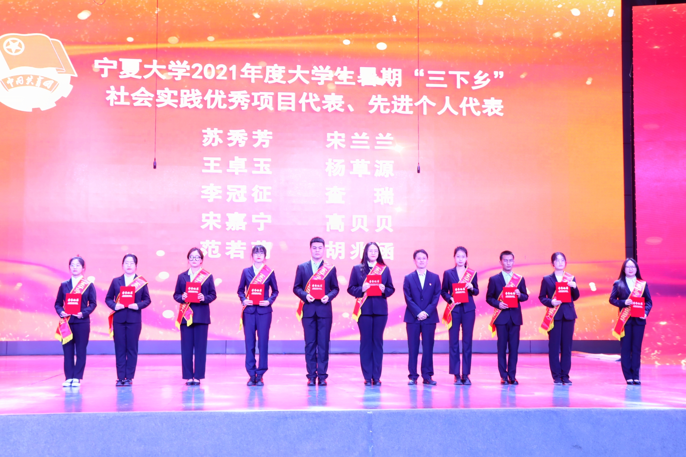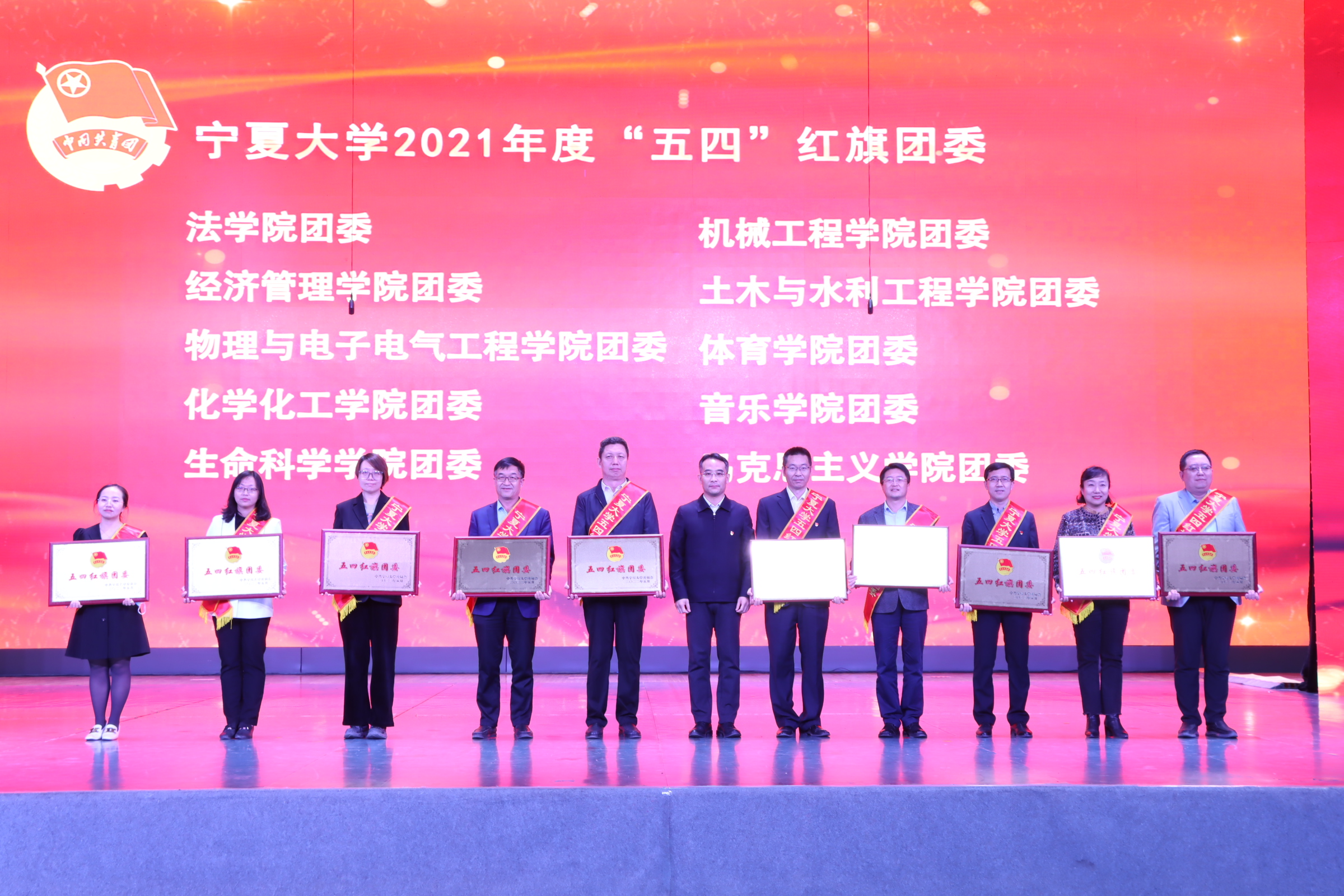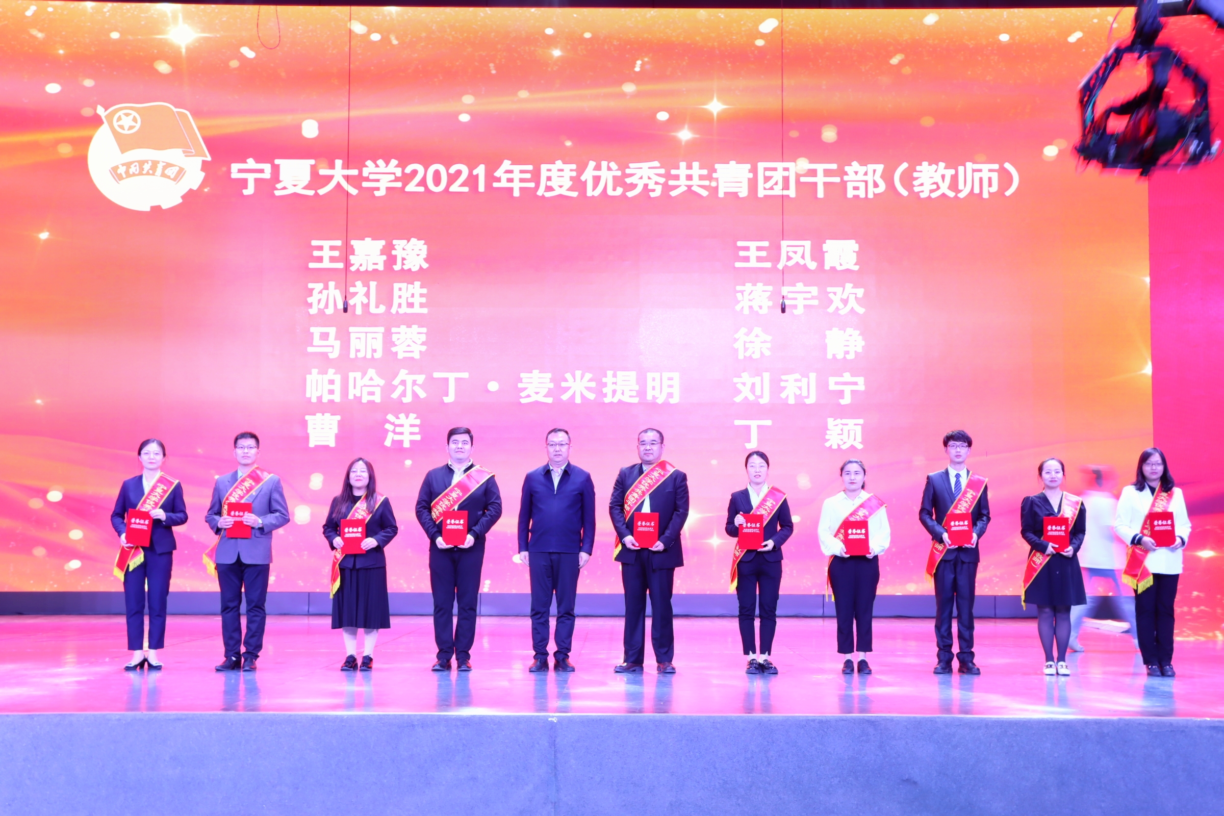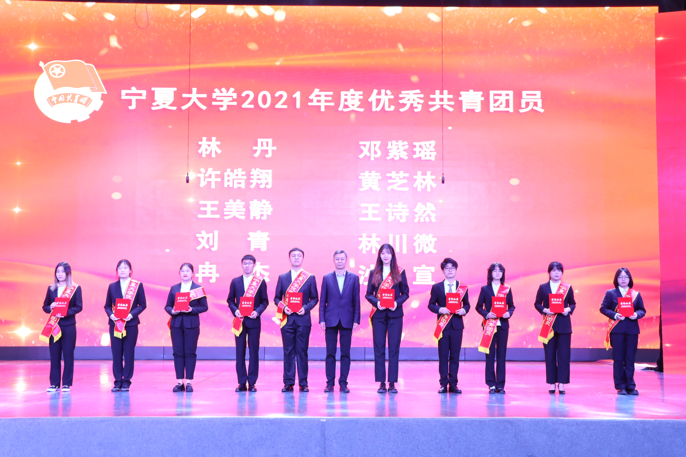 “五四”表彰会上,共青团新葡的京集团8814vip官方登录委员会荣获宁夏大学2021年度“五四”红旗团委称号,王嘉豫荣获宁夏大学2021年度优秀共青团干部(教师)称号,李立菲等4人荣获宁夏大学2021年度优秀共青团干部(学生)称号,林丹等9人荣获宁夏大学2021年度优秀共青团员称号,新葡的京集团8814vip荣获宁夏大学2021年度第十三届“挑战杯”大学生课外学术科技作品竞赛优秀组织单位、大学生暑期“三下乡”社会实践优秀组织单位,杨草源荣获宁夏大学2021年度大学生暑期“三下乡”社会实践先进个人,魏富荣荣获宁夏大学2021年度星级志愿者称号,与会领导为他们颁发了奖牌和证书。