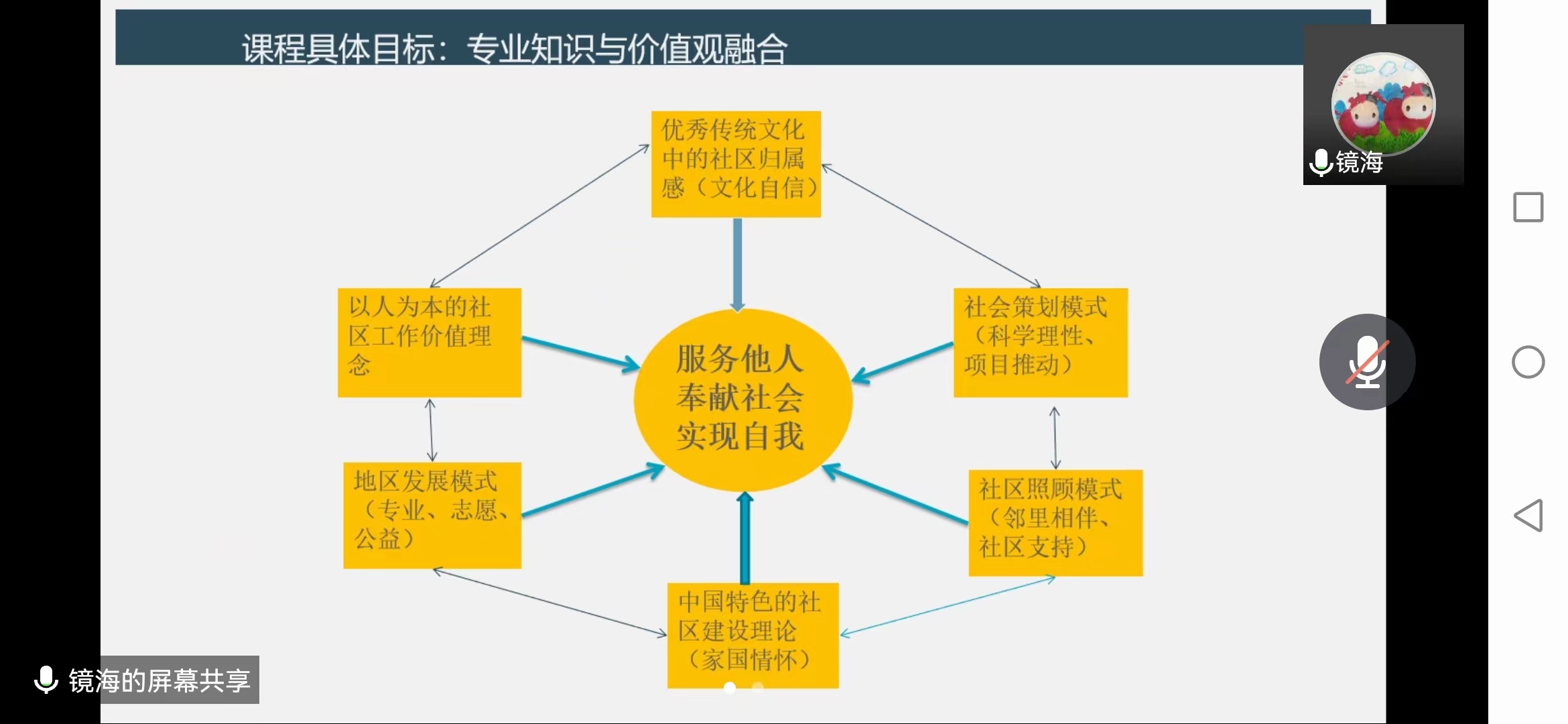 法律系刘芳围绕教师教学创新大赛作题为《经济法学》的课程汇报。她首先分享了关于该课程的理念与目标,指出该课程深入贯彻习近平法治思想,目标在于培养有“家国情怀,全球视野”的卓越的法治人才。她对该课程的主要内容进行介绍,包括深化立法工作、加快区域经济立法、完善金融立法等相关内容作了详细的讲解。她通过分享自己亲身的教学、调研经历和有关该课程的视频资料,讲解了有关课程的学情分析、课程思政、过程与方法、考评与反馈、文档规范和设计创新等内容;行社系张琴围绕《城市社会学》课程线下教学情况展开汇报,她从课程的内容出发,指出城市社会学是社会学与城市学的交叉学科,内容涵盖面广泛,涉及多方面的专业理论。她提到通过城市社会学的教学来帮助学生了解城市发展,培养学生运用城市社会理论与方法分析城市社会发展问题的能力。她以人口学、经济学、社会学、地理学等不同的角度,全面、广泛的讲解了城市化的内涵,并综合分析了城市化在人口结构、经济结构、生活方式、地域空间四个方面的转型;行社系王俊丽通过腾讯会议围绕《社区工作》课程展开课程思政教学分享,她讲述了该课程主要面向本科二年级的学生,课程的主要内容围绕社会工作的价值观、理论基础、方法技巧和本土社区工作实务探索四大模块组成。她指出该课程的具体目标是将专业知识和价值观相融合,并以自己的教学经验分享了该课程的教学方法、教学设计举例等相关内容。