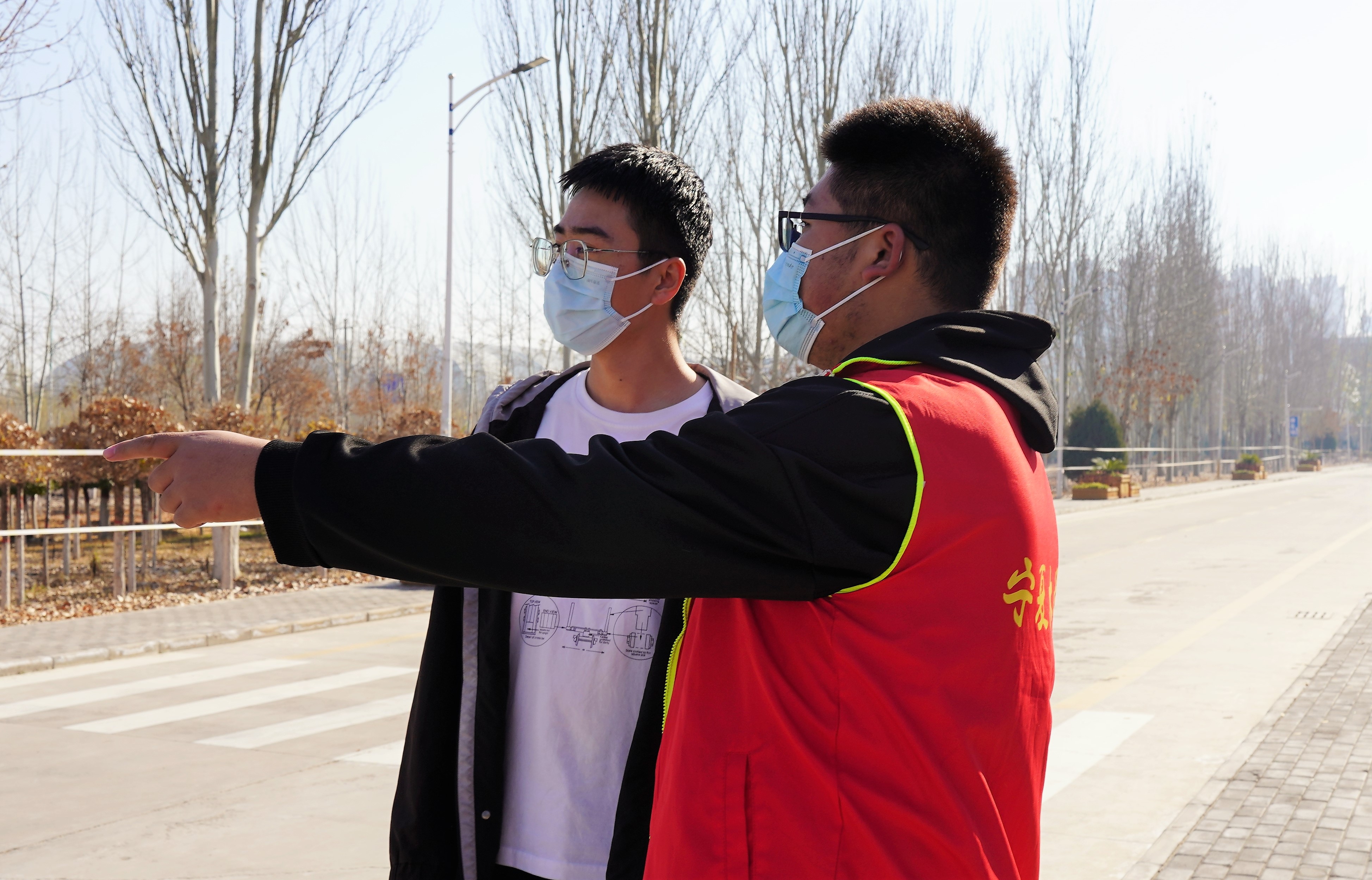 老师做出榜样,学生自然也不甘落后。在疫情防控逐步常态化的今天,防止疫情外输进校显得尤为重要。对此,新葡的京集团8814vip组建“教师+学生”志愿者队伍,学院党委书记李治涛、院长吕耀军牵头,志愿者教师、学生准时到岗,防止出现校内外人员接触,保障校园疫情防控工作有序进行。起风、下雨,夜晚、寒风,志愿者们意志坚定,毫无懈怠之意。冷风突袭,寒冬将至,墨绿色的“大衣”携着手电,点亮了一方黑夜,坚守着师生安全。