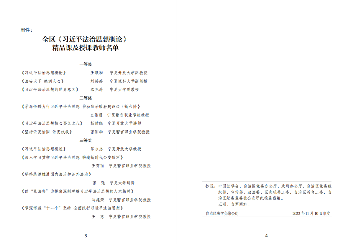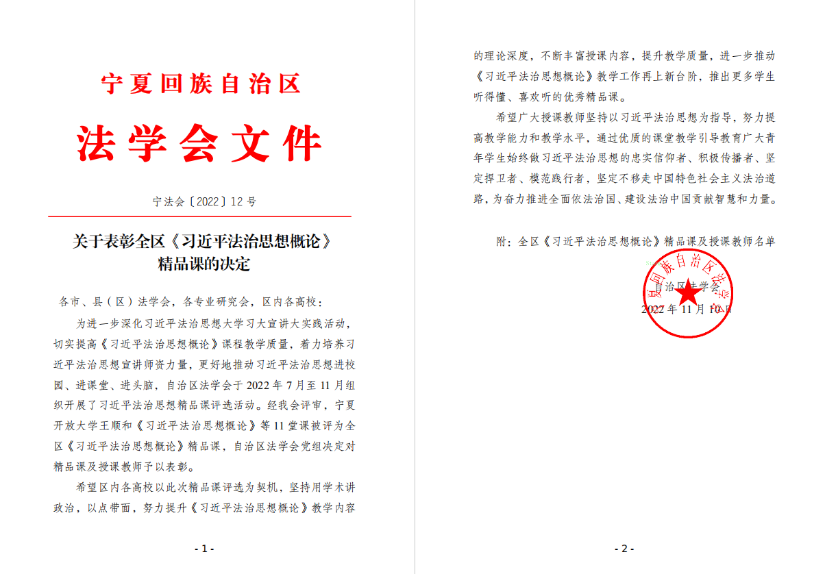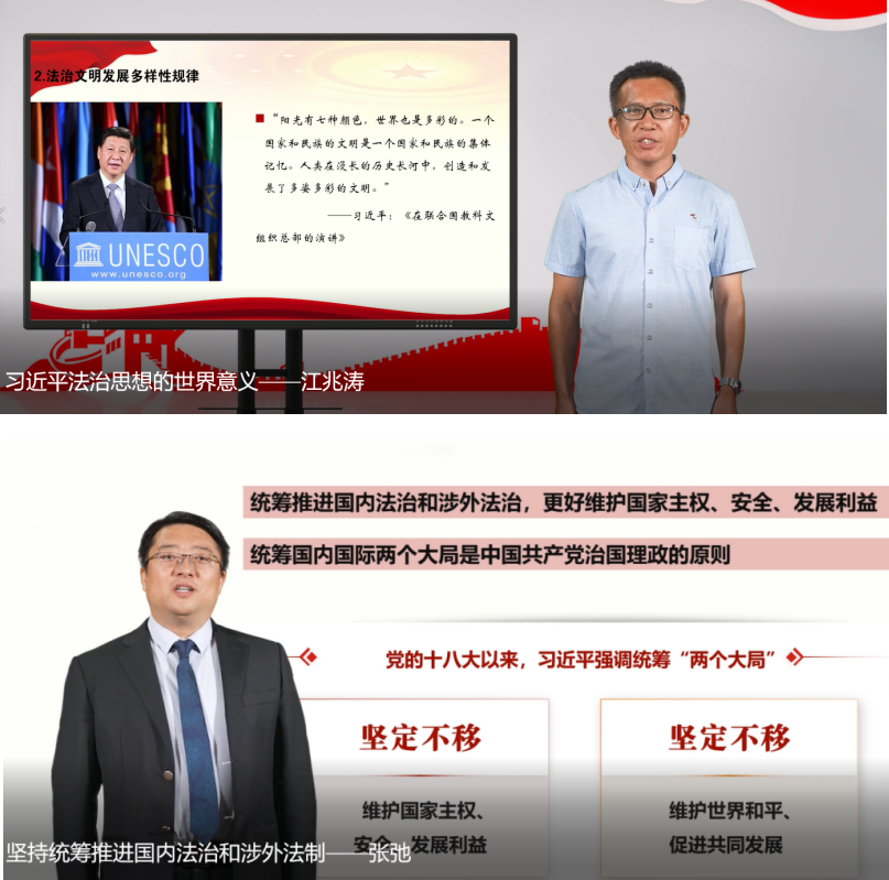 据悉,自治区法学会今年首次在全区范围内开展《习近平法治思想概论》精品视频课遴选,我院江兆涛老师主讲的《习近平法治思想的世界意义》视频课获得一等奖、张弛老师主讲的《坚持统筹推荐国内法治与涉外法治》获得三等奖。学院高度重视《习近平法治思想概论》教学工作,法律系教工党支部引导党员教师从专业课的角度系统学习、研究习近平法治思想,实现习近平法治思想与各门法学专业课程有机融合,增加运用研讨式、案例式、情景模拟式等互动式教学方法的课堂,把社会主义法治国家建设实践的最新经验和生动案例带进课堂教学。