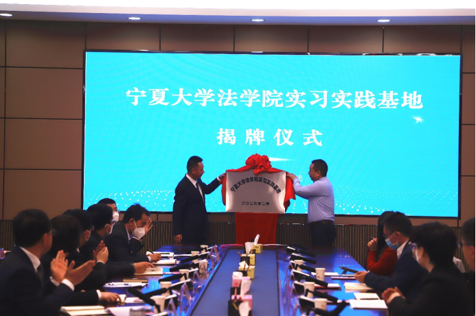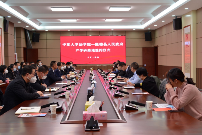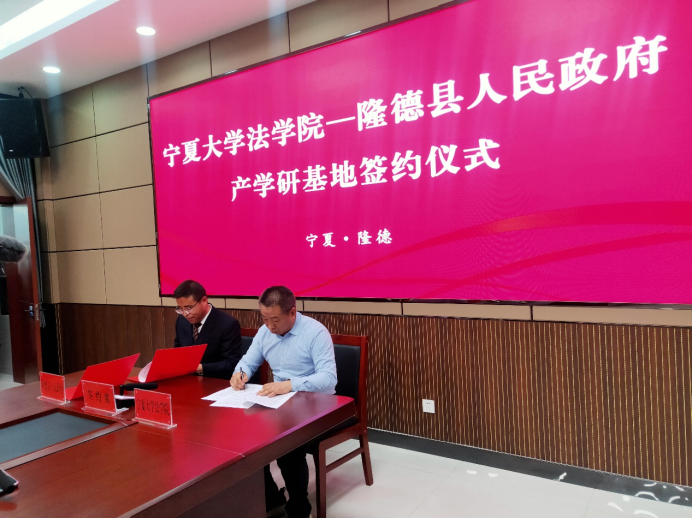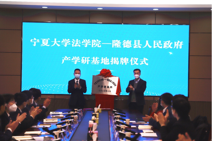 2023年2月1日,新葡的京集团8814vip官方登录党委书记李治涛、院长吕耀军、副院长胡世恩等一行10人前往隆德县,与隆德县人民政府进行了产学研基地签约揭牌仪式。隆德县委书记刘斌,县委副书记、政法委书记兰秀全,隆德县委常委、政府副县长陈昊,隆德县全面依法治县委员会部分成员单位主要负责同志,各乡镇分管领导及律师代表参与此次活动。