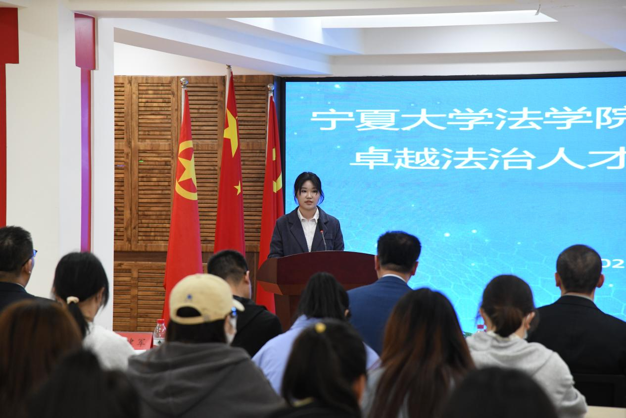 林丹同学作为卓越班学生代表发言,她说作为成为卓越班的一员,我们将享受到优质的教育资源和培养机会,我们将更加珍惜这次难得的机会,不负众望,努力学习,不断进步,不断拓宽专业知识,为能够成为优秀的法治人才而不断奋斗。