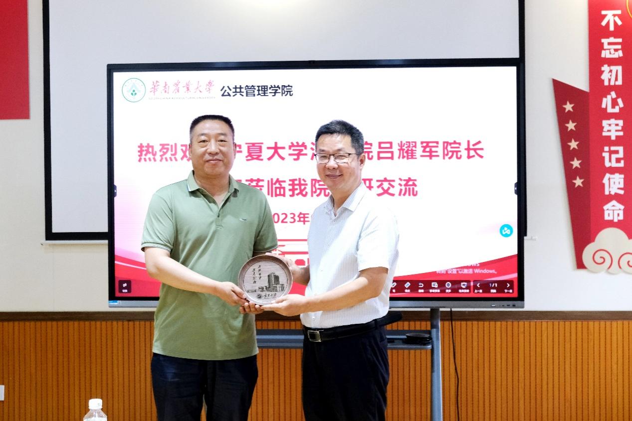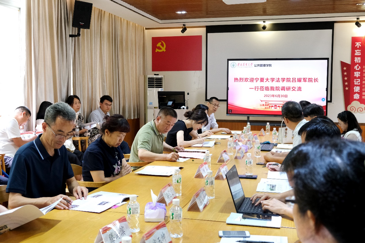 为推进我院行政管理国家一流本科专业建设工作,6月30日上午,新葡的京集团8814vip院长吕耀军教授、副院长陆筱璐副教授、行社系系主任雷安琪副教授、MPA学位点负责人杨文林副教授、以及行社系教师安翔教授、冯杰文教授、滕海滨副教授、张红娟副教授、马清虎副教授、韩永静副教授、张琴副教授、周群老师、李俊群老师、张弛博士、贾陈亮博士、马斌博士、姬飞霞博士一行17人,赴华南农业大学公共管理学院开展有关学科建设的调研与交流会。华南农业大学公共管理学院党委书记蔡茂华、副院长杨正喜教授、副院长唐斌教授,以及张玉教授、廖杨教授、陈玉生副教授、武玉坤副教授、区晶莹副教授参加座谈会。