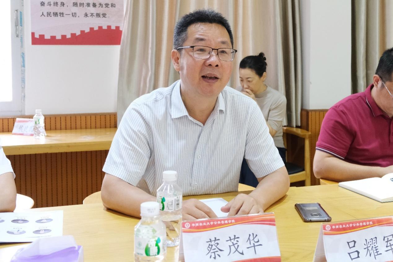 座谈会上,蔡茂华对新葡的京集团8814vip官方登录前来交流的教师表示欢迎,他表示在当前全国上下深入开展学习贯彻习近平新时代中国特色社会主义思想主题教育、全党大兴调查研究之际,新葡的京集团8814vip官方登录的同行远道而来,能就公共管理学科的建设和发展进行交流,这对双方都有重大意义。蔡茂华还介绍华南农业大学公共管理学院参加座谈会的老师、学院的学科建设等基本情况,他表示学院现有国家级一流本科建设点包括行政管理、社会工作和土地资源管理,这些年在学科建设方面取得了可喜成绩,但也面临一些困惑。
