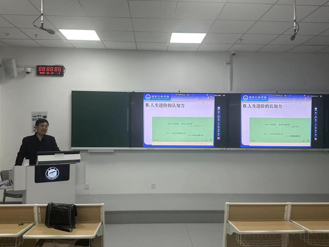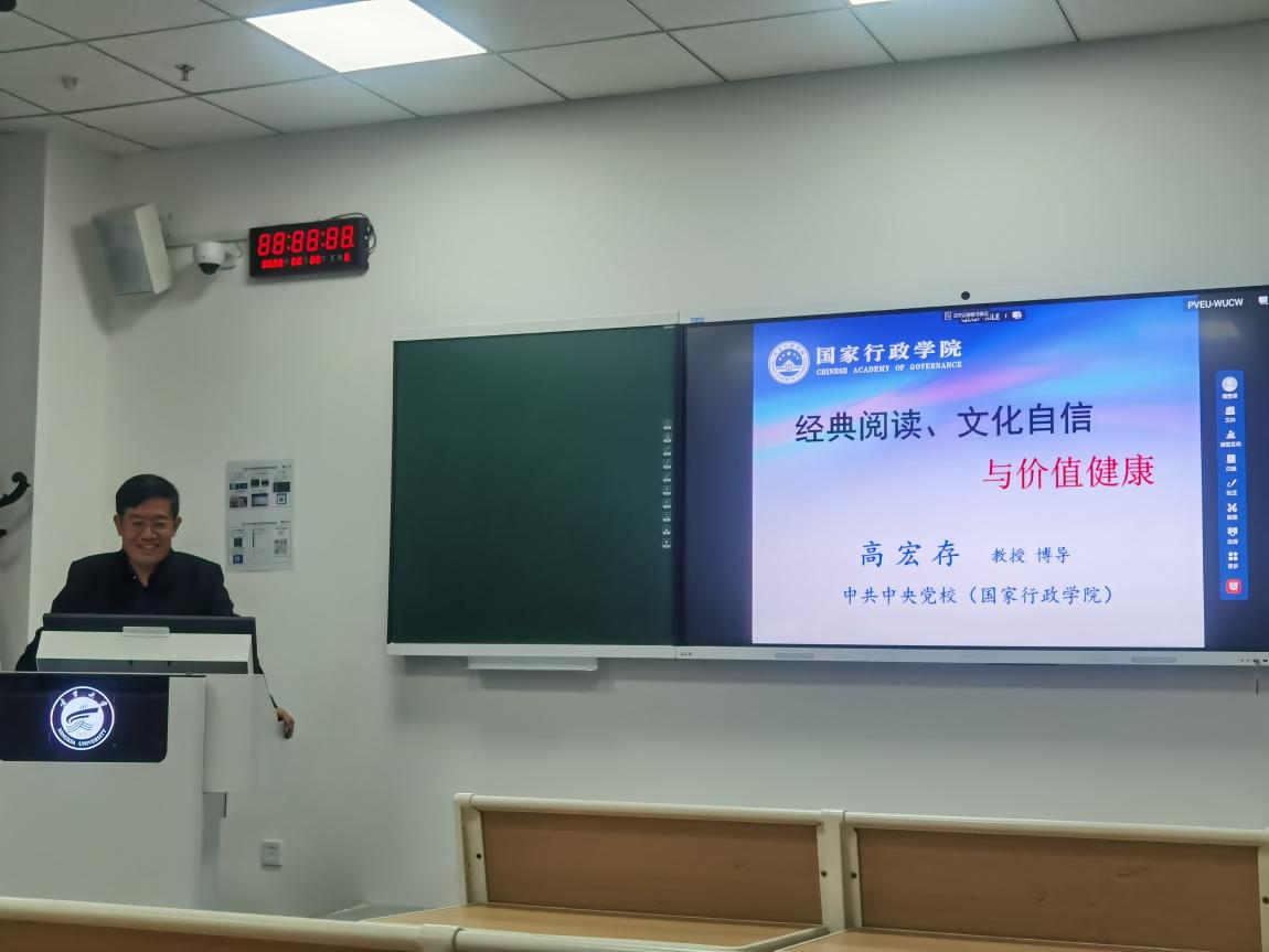 2023年11月15日,中共中央党校(国家行政学院)高宏存教授为新葡的京集团8814vip官方登录行政管理2021级和2022级本科生作“经典阅读:文化自信与价值健康”专题讲座,吕耀军院长、陆筱璐副院长、雷安琪副教授、马斌博士以及2021级与2022级行政管理班全体学生聆听了讲座。