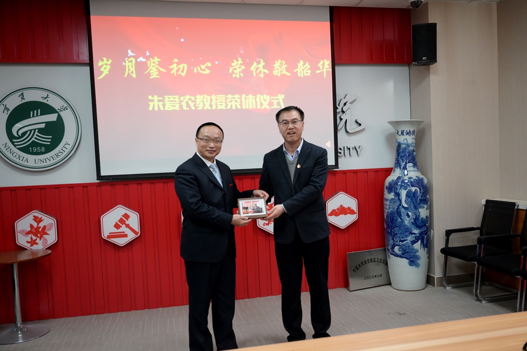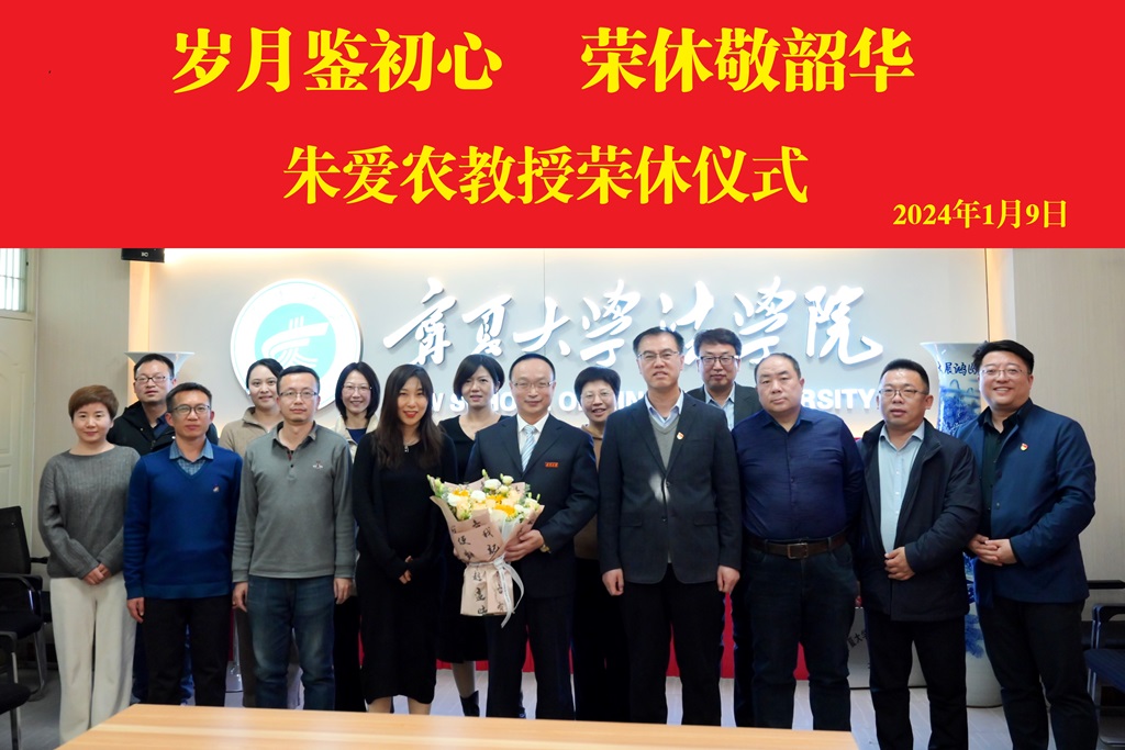 朱爱农教授发表了荣休感言,他简要回顾了个人在学院的工作历程,他讲到,在这几十年如一日的工作中有四感。第一感是感恩,感恩于宁夏大学培养之情。第二感是感动,感动于学院领导与同事一直以来的关心照顾。第三感是感谢,感谢同事的对自己工作的帮助、支持、谅解。第四感是感怀,回顾学院与学科的一路成长颇有感触,衷心祝愿学院发展越来越好。其他老师也纷纷发言,王丽婷、胡晓丽、张存明等老师回忆了在学院创建和发展过程中与朱爱农教授朝夕相处、共同奋斗的难忘岁月,畅叙了同甘共苦、同舟共济结下的深厚友情,谈起与朱爱农教授相处的点滴,对他勤勤恳恳的工作付出表示敬意和钦佩,并向朱爱农教授表达了感谢与祝愿。