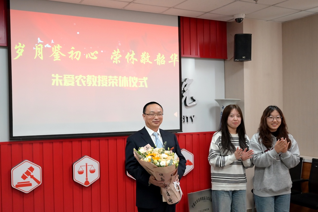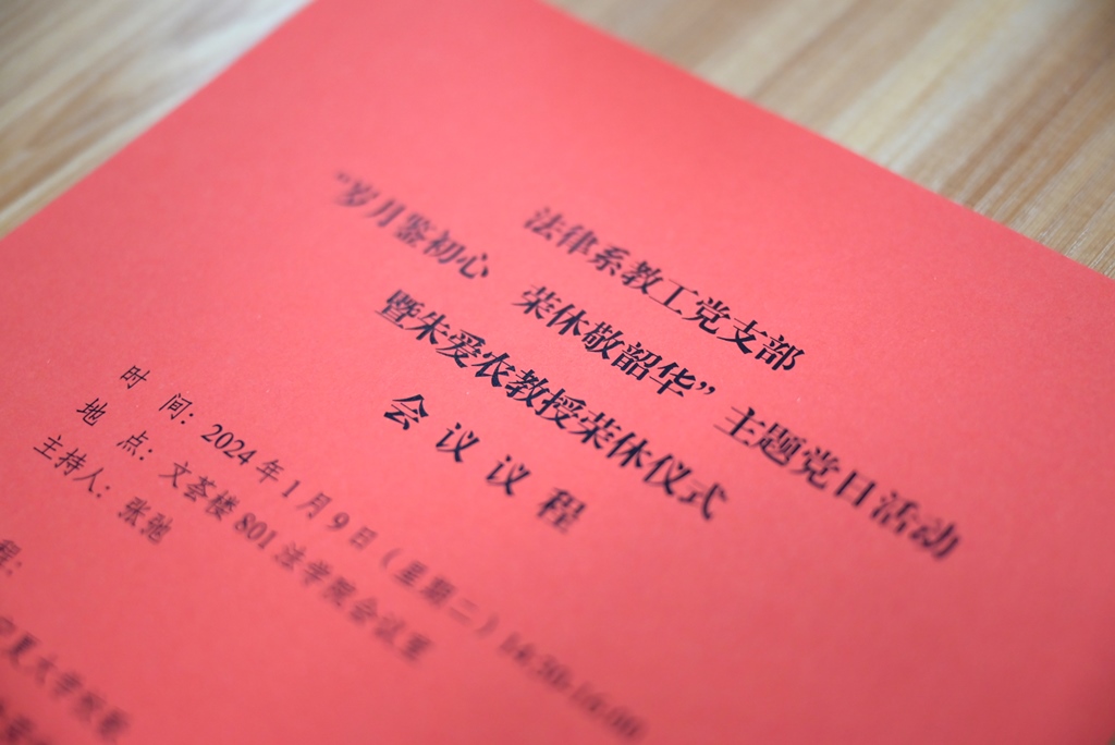 (杨阿静/文 童鹏/图)为切实增强退休教职工的荣誉感、归属感和幸福感,进一步增强广大教职工的凝聚力和向心力,法律系教工党支部于1月9日举行“岁月鉴初心 荣休敬韶华”主题党日活动暨朱爱农教授荣休仪式。学院领导班子、教职工代表、学生代表共同参加,本次仪由支部书记张弛主持。