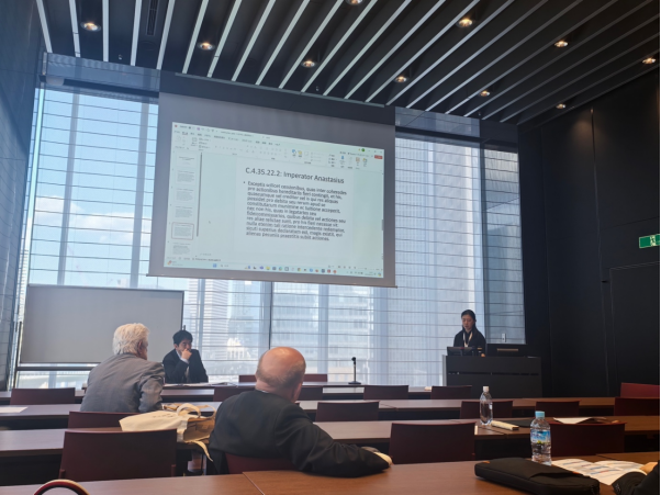 会议议程近40项,每项议程报告人约2-3人,包含30分钟的个人发言及自由辩论。新葡的京集团8814vip官方登录教师王静作为受邀的中方学者之一参会,并在9月24日的议程当中做了题为《Reflections on the Lex Anastasiana》的学术报告, 探讨了罗马法后古典时期立法《阿纳斯塔修斯法》的规范价值及社会经济意义,并同与会中外学者就报告内容开展了热烈的交流与讨论。