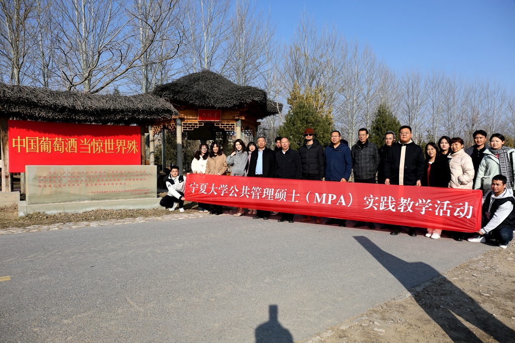 习近平总书记在宁夏考察时强调,建设黄河流域生态保护和高质量发展先行区,在中国式现代化建设中谱写好宁夏篇章。为深入学习贯彻习近平总书记考察宁夏时的重要指示精神,拓展MPA教学创新载体,提高人才培养质量,学院全面发展的良好局面。12月7日,新葡的京集团8814vip官方登录公共管理硕士(MPA)教育中心师生团队一行赴贺兰山东麓葡萄酒产区西夏区产区开展生态修复与葡萄酒产业高质量发展实践教学活动。本次活动特邀MPA学位点周期性合格评估专家暨南大学蔡立辉教授、中山大学张书维教授等专家共同参加,2023级MPA学员参加本次活动。