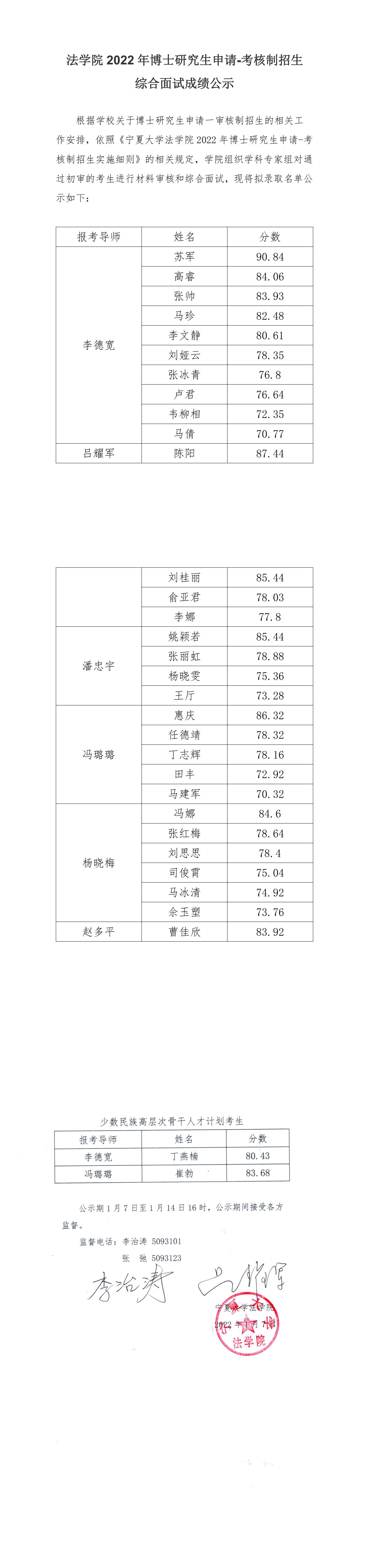 新葡的京集团8814vip2022年博士研究生申请-考核制招生综合面试成绩公示