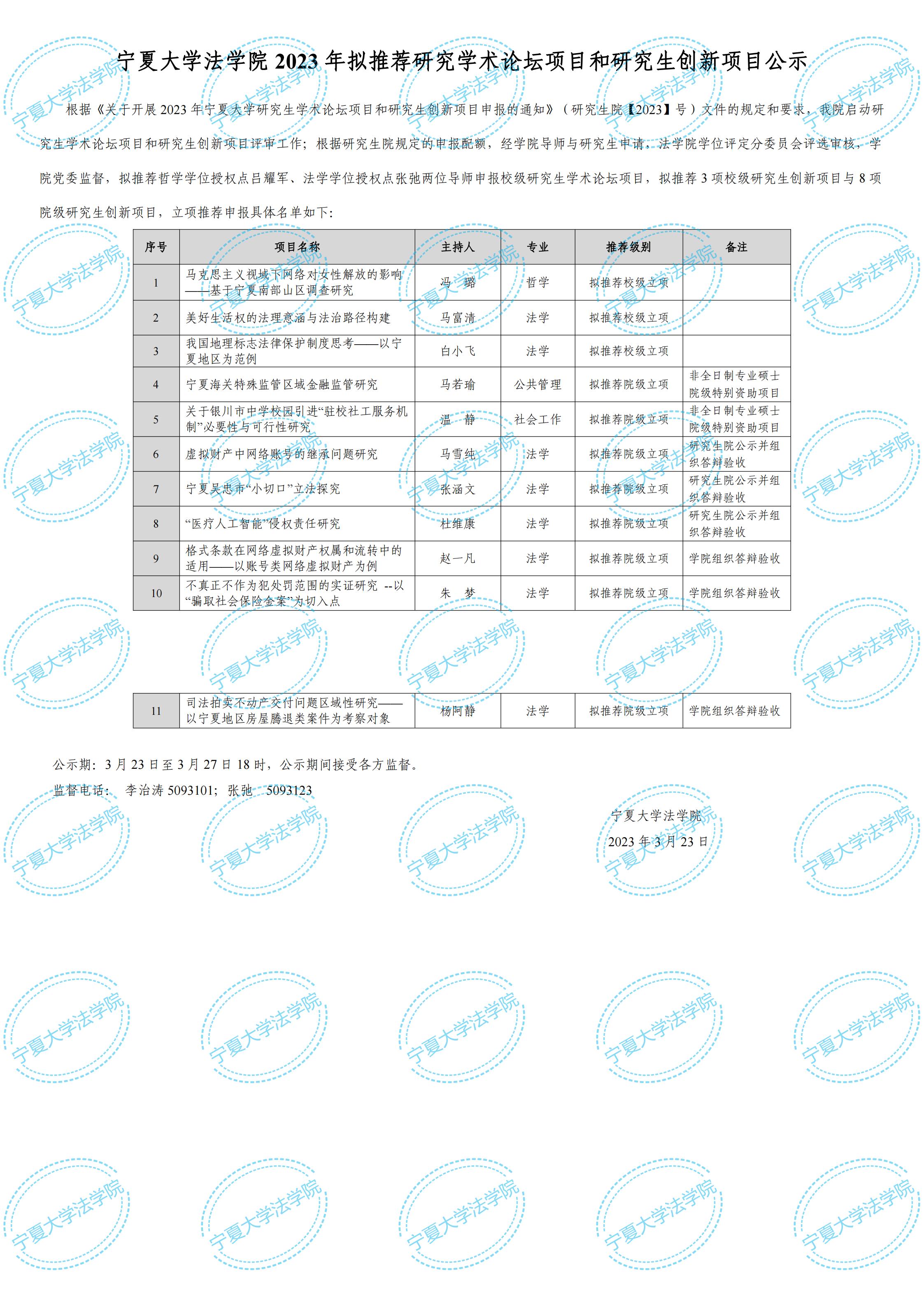 新葡的京集团8814vip2023年拟推荐研究学术论坛项目和研究生创新项目公示