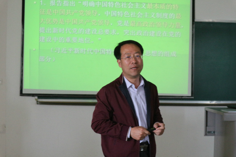 为提升党员拟发展对象和入党积极分子对十九大报告的深刻认识,贯彻落实十九大精神。4月18日下午3点,政新葡的京集团8814vip思想政治教育与哲学系马拥军老师在贺兰山校区文荟楼340教室为学院第三十三期积极分子、第七期党员发展对象培训班学员作了题为《从十九大报告中看中国共产党的领导》的专题讲座。