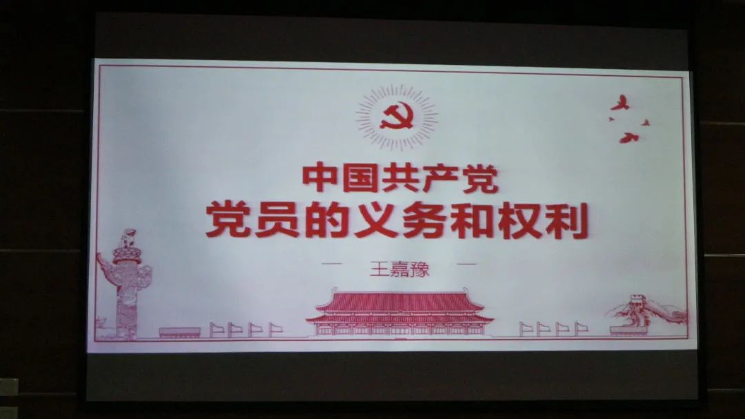 王嘉豫老师根据党章规定,为入党积极分子以及发展对象培训班学员们讲解了共产党员必须履行的八项义务以及党员享有的八项权利,细致而有层次的讲解,有利于进一步增强积极分子以及发展对象的党性修养,牢固树立全心全意为人民服务的宗旨。最后,她希望在场的每位同学都能加强责任意识,进一步向党组织靠拢,早日加入中国共产党,成为一名优秀的共产党员。