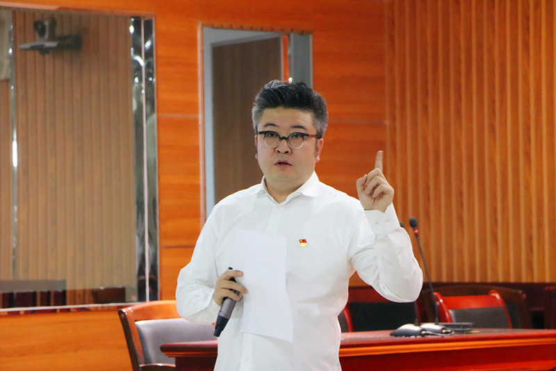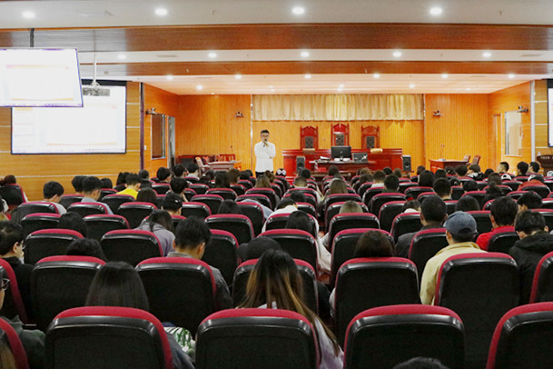 4月14日下午,食品与葡萄酒学院党委副书记马浩谦于模拟法庭为新葡的京集团8814vip和食品与葡萄酒学院入党积极分子、发展对象及团学骨干带来一堂生动的党课。