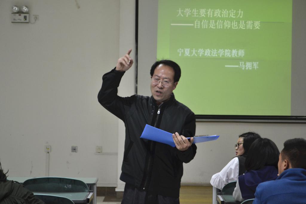 开班典礼后,学院政治系马拥军老师为全体培训班学员做了题为《大学生要有的政治定力——自信是信仰也是需要》的精彩讲座。马老师以香港占中事件、台湾“台独”大学生事件和八九风波为例引出政治定力之于当代大学生的重要性。他在阐述自信的概念和来源的过程中,援引当今中国综合发展的新状况、新突破,并结合康德名言“世界一片茫然,生活在于选择。”说明大学生自信心树立的可能性和必要性。他强调大学生党员应在精神上树立高度的文化自信,同时也在实际生活中以高标准、严要求鞭策自己,切实做到拥有绝不动摇的政治定力。