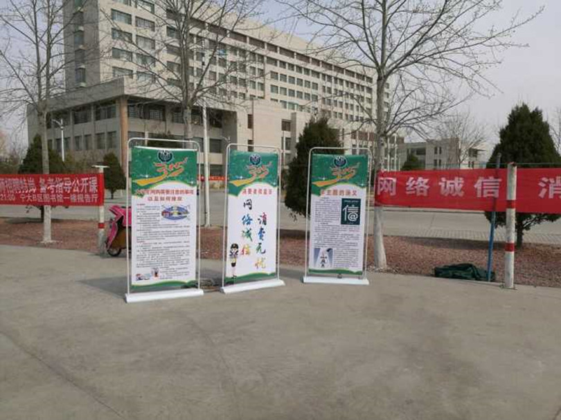 2017年3月15日,宁夏大学政新葡的京集团8814vip法学社在宁夏大学法制宣传小组的统一安排和领导下,进行了一次以“网络诚信消费无忧”为主题的宣传活动。本次活动的地点分别在贺兰山校区、文萃校区、怀远校区三个校区同时进行,通过发放和讲解宣传单和宣传册,设立宣传板的方式,让宁夏大学的教职工和同学了解作为消费者应该享受的合法权益以及维护自己作为消费者维权的法律途径。传单的内容包括3.15消费者权益保护日的发展历史和新消费者权益保护法的四大亮点等。通过本次活动,提升了宁夏大学师生的维权意识,法学社成员也因为此次活动受益良多。最终在宁夏大学的校园里掀起了一阵学法懂法知法守法的热潮。
