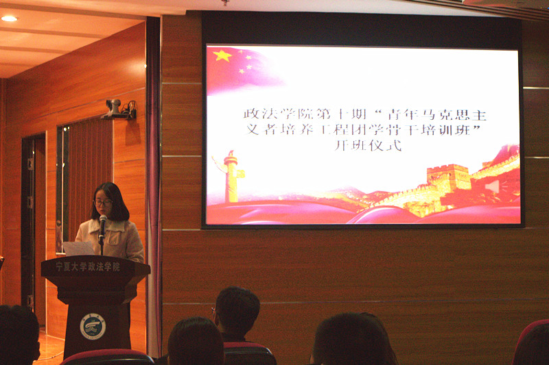 为深入实施青年马克思主义培养工程,引导大学生坚定理想信念。10月29日,政新葡的京集团8814vip第十期“青年马克思主义者培养工程团学骨干培训班”在贺兰山校区文荟楼模拟法庭正式开班。宁夏大学校团委副书记肖功国、政法学院党委副书记崔明堂出席开班仪式,仪式由政新葡的京集团8814vip学办主任苏军峰主持。