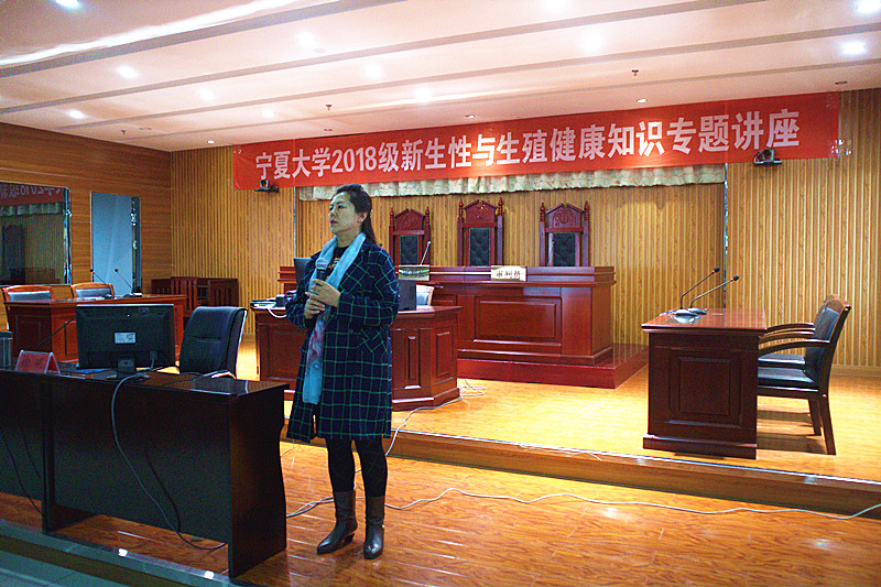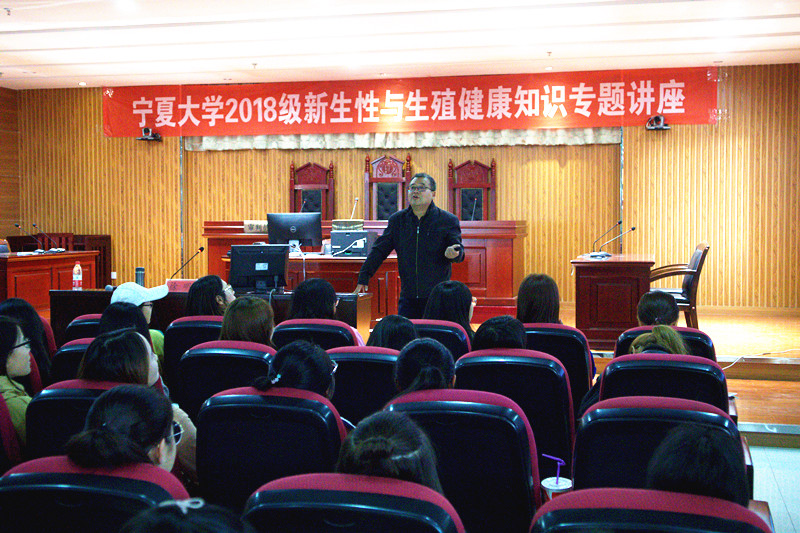 10月10是“世界精神卫生日”。聚焦青少年身心健康,下午两点,政新葡的京集团8814vip特邀生命科学学院生物科学系徐明教授、宁夏疾病预防控制中心的吴忠兰老师,在文荟楼模拟法庭为2018级全体新生做“性与生殖健康知识”专题讲座。
