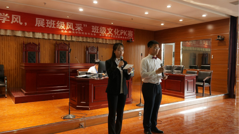 5月23日下午4点,政新葡的京集团8814vip2018年度“树优良学风,展班级风采”班级文化PK赛在文荟楼模拟法庭成功举办。