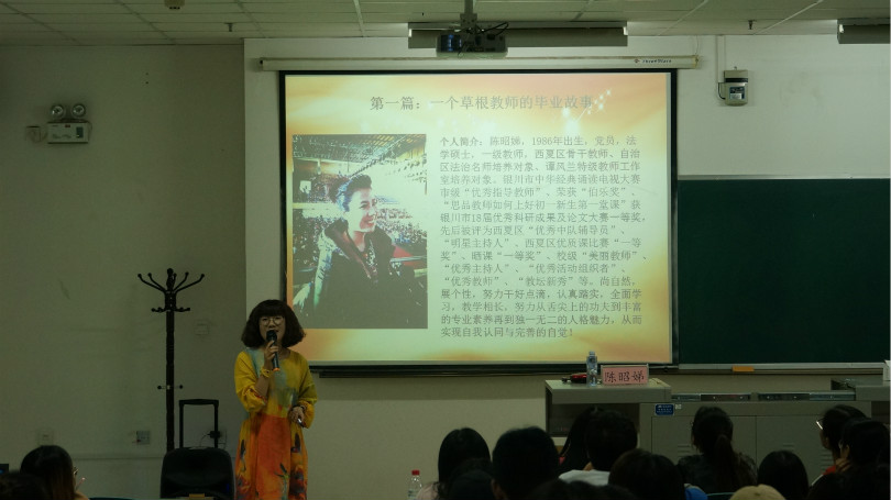 为增强师范生对思想政治教育专业的职业认知,给同学们的职业选择提供可行性指导。5月21日晚上7时,政新葡的京集团8814vip思想政治教育与哲学系特别邀请了银川市九中陈昭娣老师在贺兰山校区文荟楼232教室作了有关师范生职业选择专题报告,系内教师代表和全体学生到场观摩聆听。