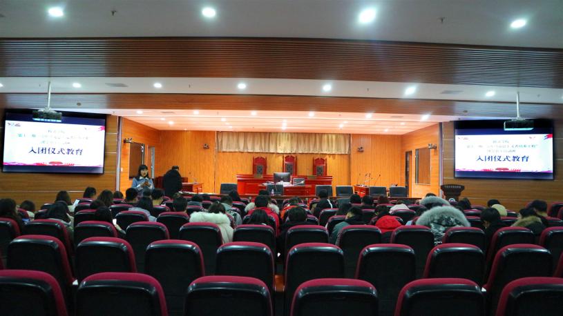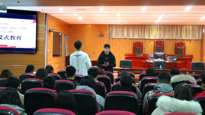 12月2日晚,政新葡的京集团8814vip于模拟法庭举行第十一期“青年马克思主义者培养工程”团学骨干培训班举办入团仪式教育及笔记展评活动,全体青马班学员参加。